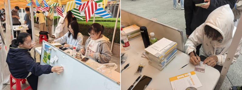 春晖社:温情传递凝聚公益之心。春晖社以“传递美好祝愿”为主题,邀请新生在便利贴上写下真诚祝福,共同构筑起一面温暖的“祝福墙”。工作人员以此为契机,向同学们详细介绍社团的公益活动与社会服务项目,传递“奉献、友爱、互助、进步”的志愿精神。现场还为报名同学准备了精美小礼品,招新登记工作在温馨融洽的氛围中顺利完成。