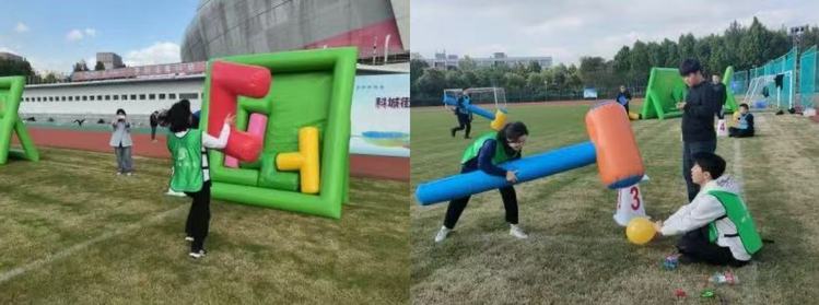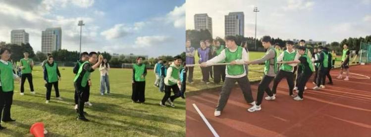 本届运动会设置了“俄罗斯方块”、“一锤定音”、“隔山打牛”、“巨人脚步”和“拔河”五个趣味与竞技兼具的团队项目。赛场上,人工智能学院的师生代表队在需要协力配合的“巨人脚步”中步调一致,在讲究策略的“隔山打牛”中默契传球,在力量对决的“拔河”项目中齐心协力,充分体现了团结协作、奋勇争先的体育精神。