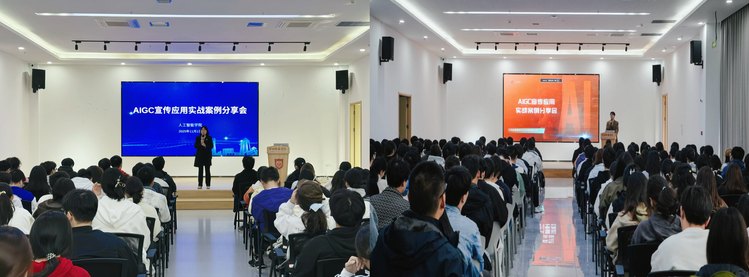 为助力师生紧跟人工智能发展浪潮,11月1日下午,人工智能学院在大数据产业园B16一楼学术报告厅成功举办“AIGC宣传应用实战案例分享会”。本次培训特邀盐城叁陆玖文化科技有限公司严新担任主讲,近三百名师生齐聚一堂,共同探索AIGC技术在宣传领域的实际应用。活动由学院党委书记郭晓俐主持。